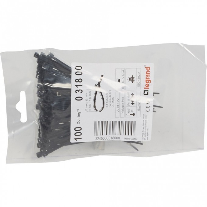 Монтажный хомут LEGRAND Colring ширина 2.4 мм длина 95 мм упаковка 100 шт чёрный 031800