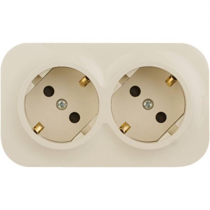 Розетка LEGRAND 2-м ОП Quteo 16А IP20 250В 2х2P+E с заземлением, защитные шторки, слоновая кость