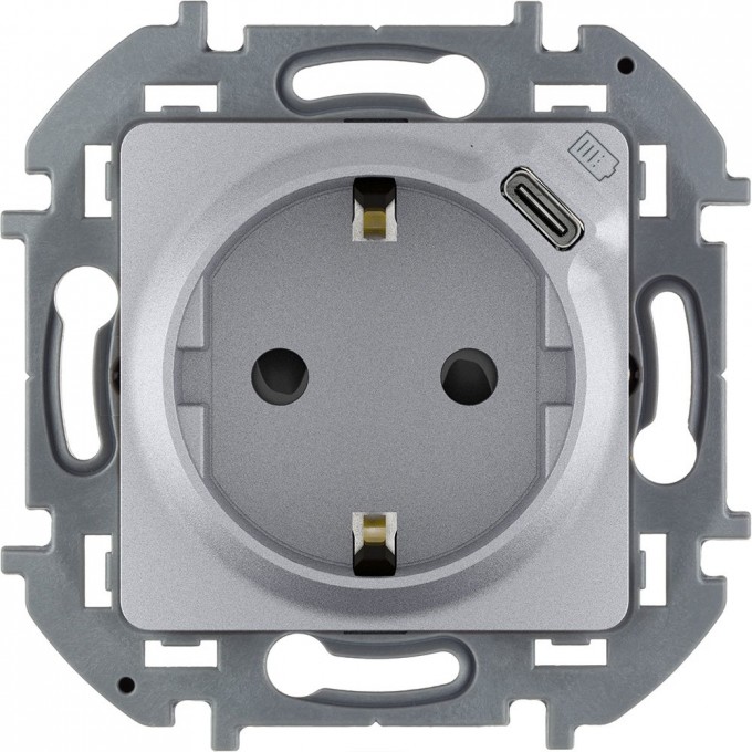 Розетка 2К+З 16А 250В с зарядным устройством USB C Legrand 1.5А 5В - INSPIRIA - алюминий 673772 применяется для одновременного электропитания бытовых потребителей и зарядки мобильного устройства. Оснащена интегрированными шторками, которые защищают детей и других пользователей от удара электрическим током.