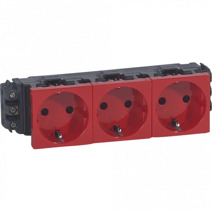 Розетка Legrand Mosaic 3х2К+3 для кабель-каналов, с винтовыми зажимами, красный 77613