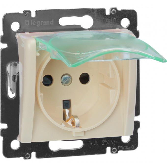 Розетка LEGRAND Valena IP 44 немецкий стандарт 2К+3 с крышкой и защитными шторками слоновая кость 774120