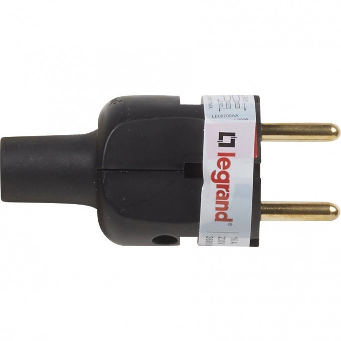 Вилка LEGRAND 2К серия Элиум 16 А резина прямой ввод чёрный 050181