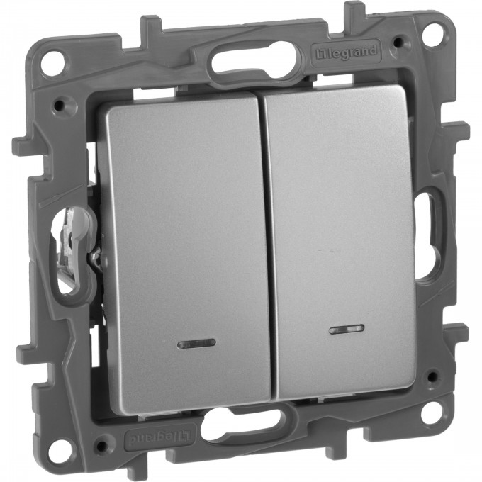 Выключатель LEGRAND Etika двухклавишный с подсветкой автоматические клеммы 10 AX 250 В алюминий 672404